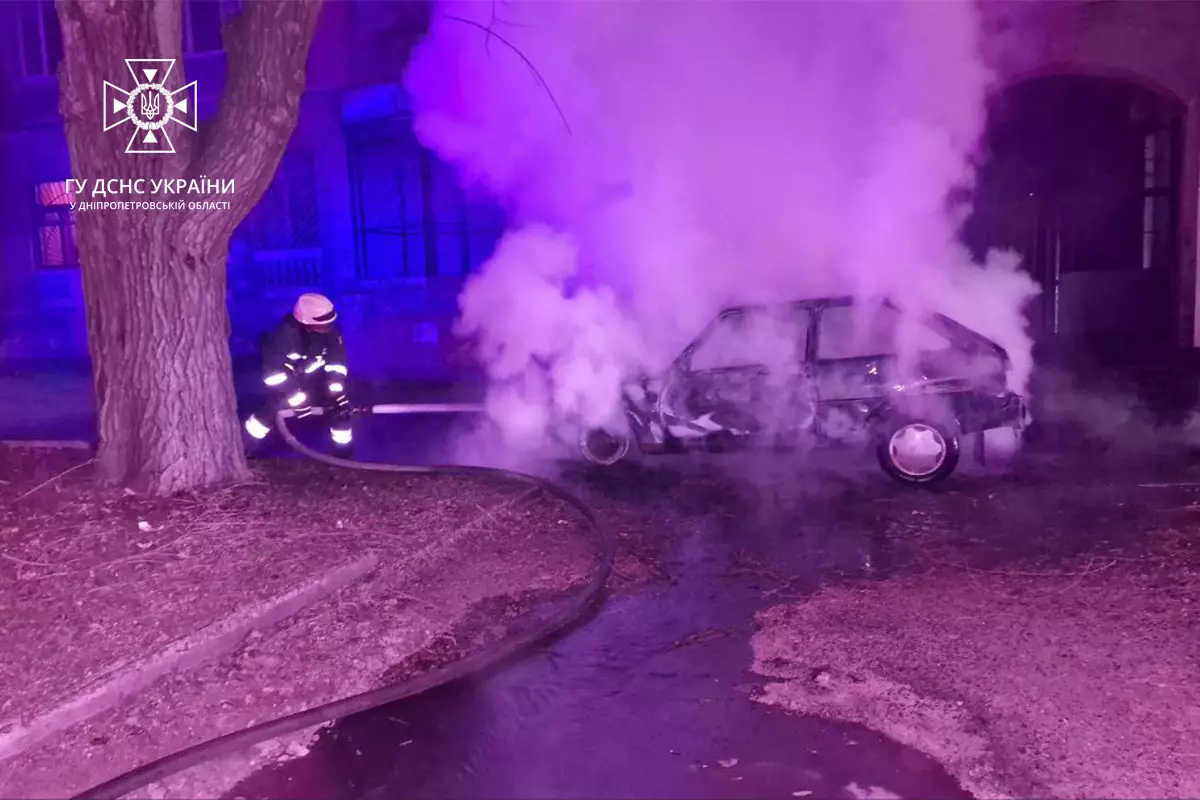 В Днепре на улице Княгини Ольги во время движения загорелась легковушка (ФОТО)