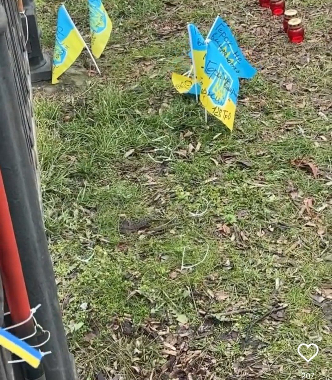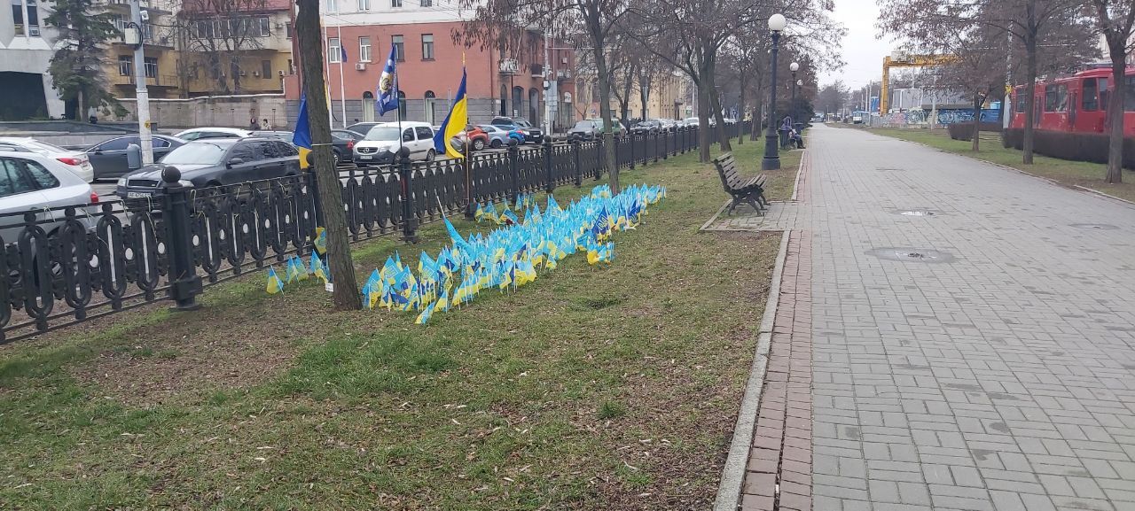 На проспекте Дмитрия Яворницкого, напротив городского совета, появился импровизированный мемориальный комплекс.