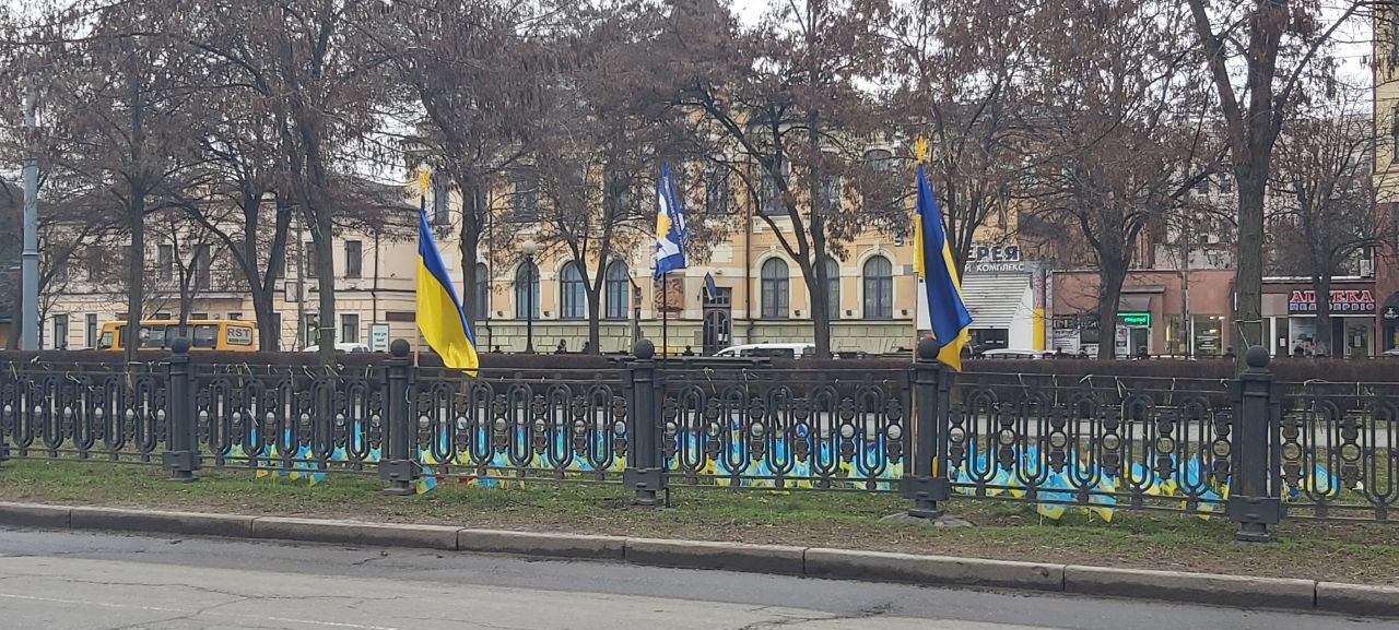 В Днепре на Яворницкого неизвестные срезали баннер "Аллея почета" (ФОТО)