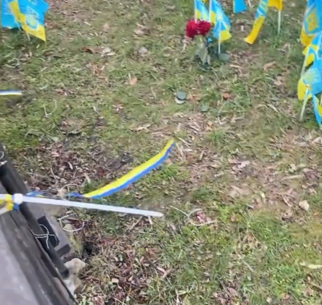 Также на этом месте был баннер "Аллея почета", который срезали неизвестные.