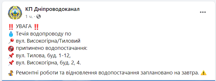 Напомним, ранее мы писали, где сегодня в Днепре нет воды: адреса.
