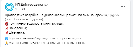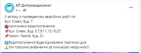 В Днепре некоторые жители снова остались без воды: причина и адреса