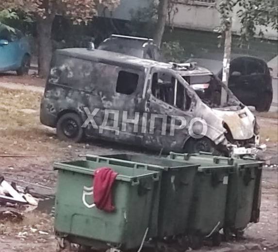 В ночь на 10 октября на улице Янгеля неизвестные подожгли микроавтобус. Известно, что он принадлежит военным 1-го отдельного штурмового батальона «Да Винчи».