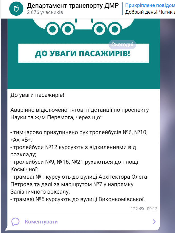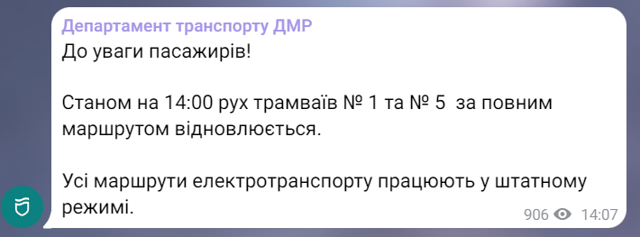 Так, в Днепре были обесточены некоторые подстанции. Из-за этого задержано движение трамваев маршрутов №1 и №5, троллейбусов маршрутов №№А, Б, 9, 16, 21.