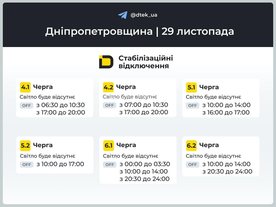 Сегодня, 29 ноября, произошли изменения в графиках стабилизационных отключений света. Днепрянам и жителям области показали новые графики, которые будут действовать до конца суток.
