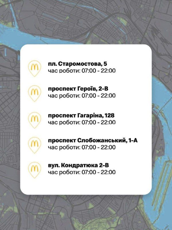 Заведения на ул. Глинки, 2 (ТРЦ "Мост-сити") и ул. Нижнеднепровской, 17 (ТРЦ "Караван") заработают позже.