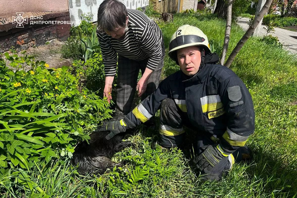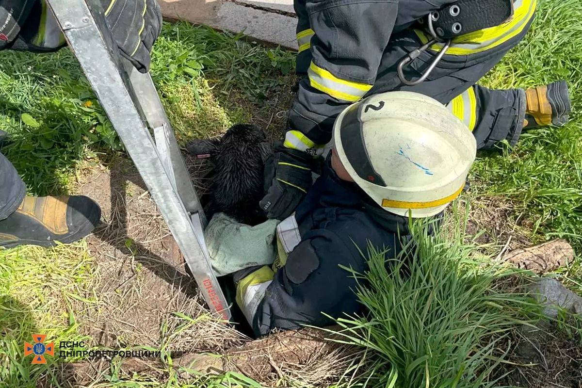 Днем 21 апреля неравнодушные жители Днепра сообщили на линию "101", что на улице Павла Полуботка Чечеловского района песик упал в коммуникационный колодец.