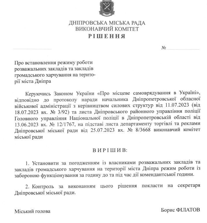 В Днепре решили установить ограничения на время работы развлекательных заведений и общепита.