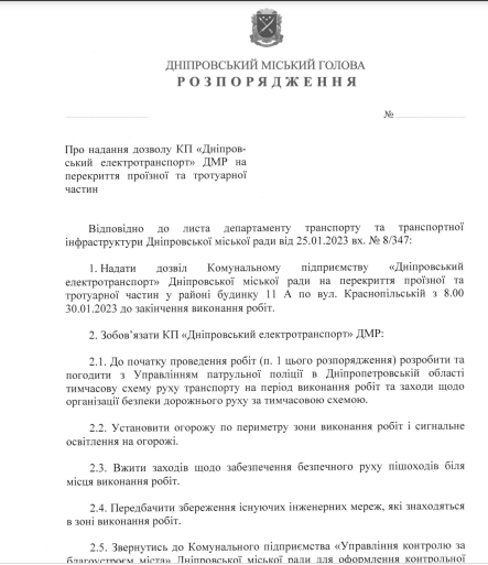 В Днепре планируют перекрыть проезжую часть и тротуар на улице Краснопольской, в районе дома №11а. Работы будет проводить КП "Днепровский электротранспорт".