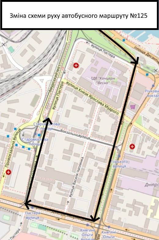 Теперь схема движения такова: от речного вокзала автобус будет следовать по улице Княгини Ольги, будет поворачивать на проспект Дмитрия Яворницкого, а оттуда – на улицу Пастера до конечной остановки.