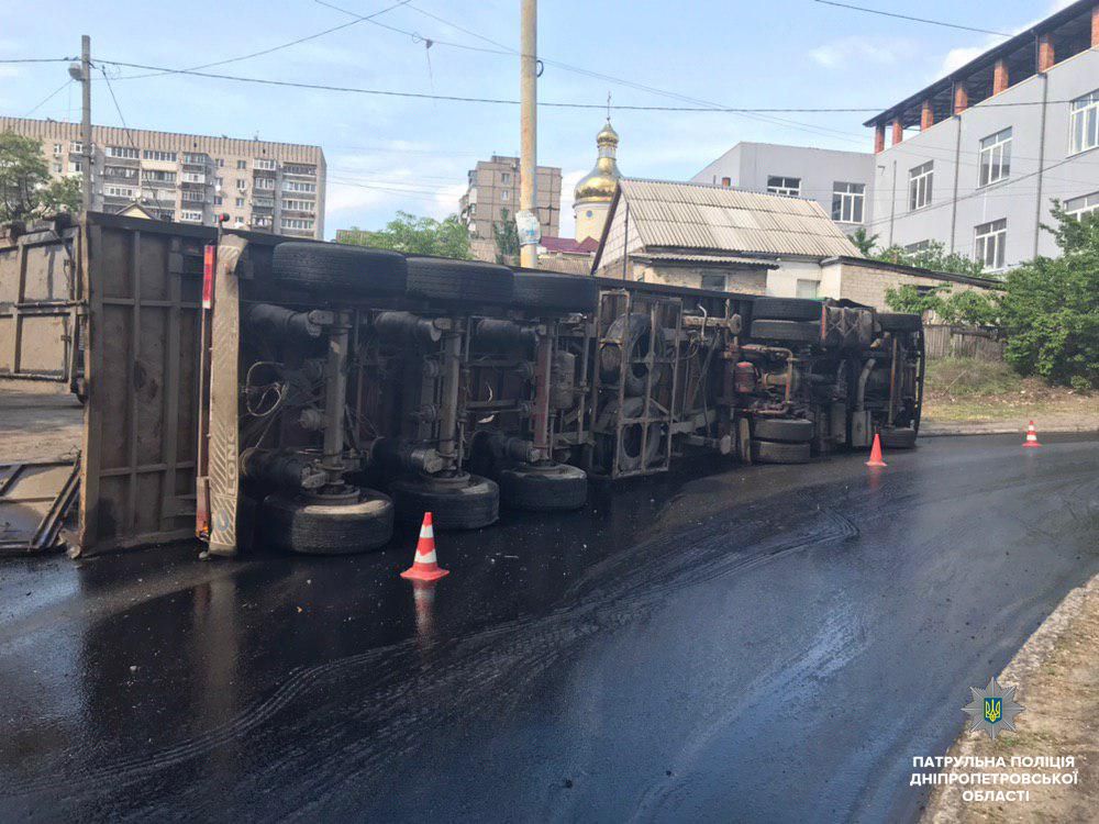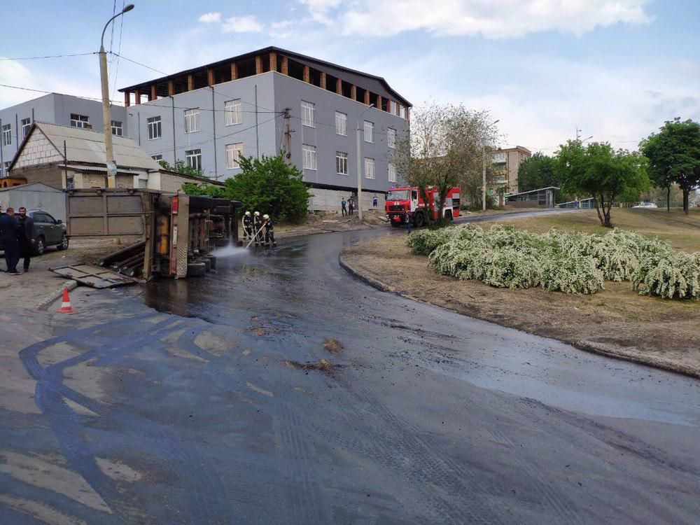 По данным правоохранителей, на перекрестке проспекта Слобожанского и улицы Каштановой произошло ДТП с многотонной фурой. Грузовик перевернулся практически посреди дороги.