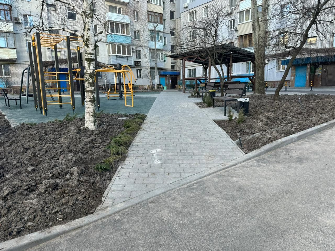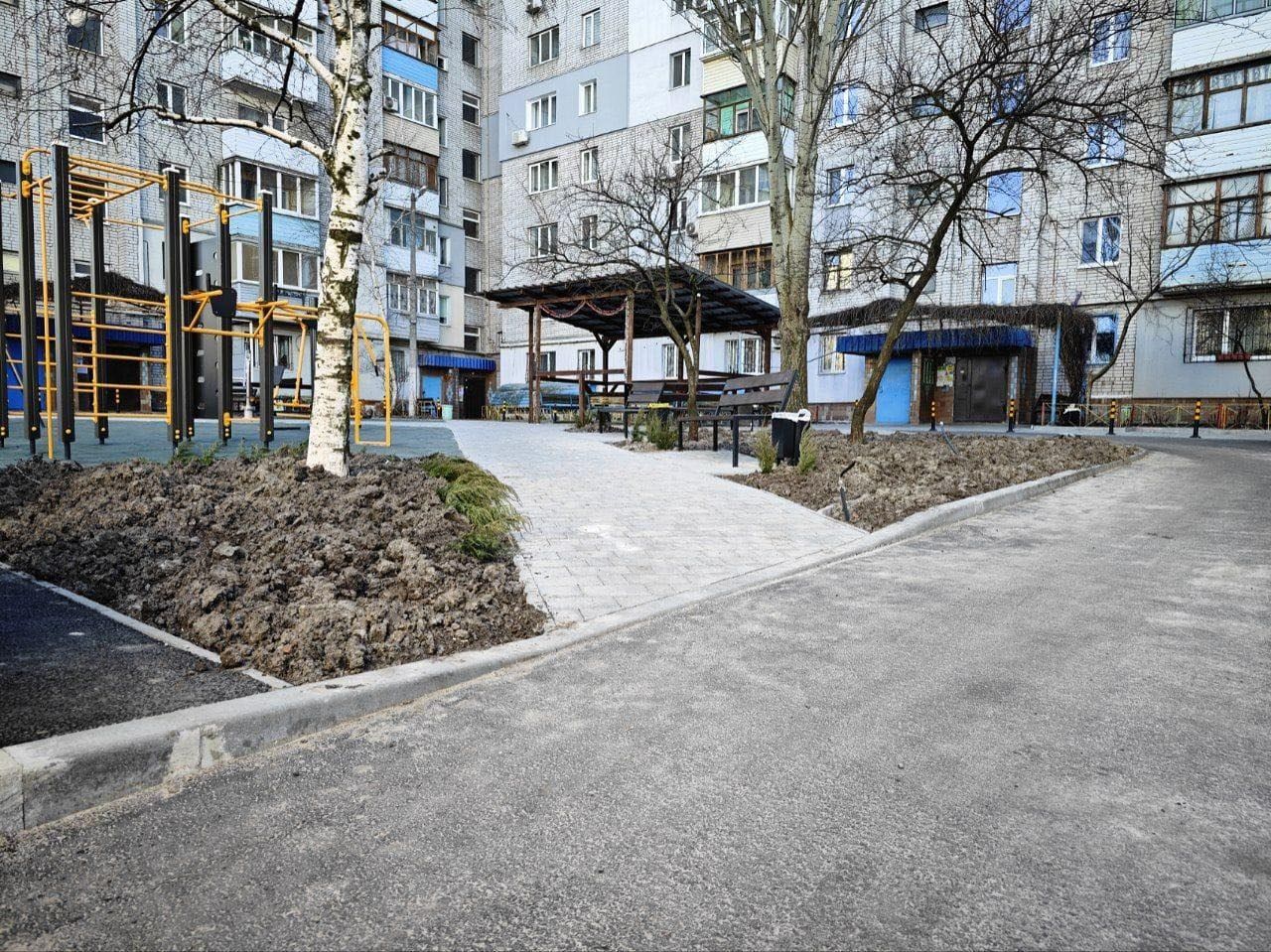 В настоящее время на клумбы уже завезли землю. Благоустройство двора почти завершено.