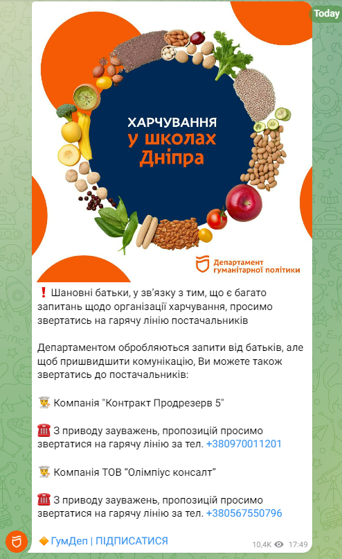В Днепре родители жалуются на школьное питание: в ГумДепе объяснили, куда обращаться