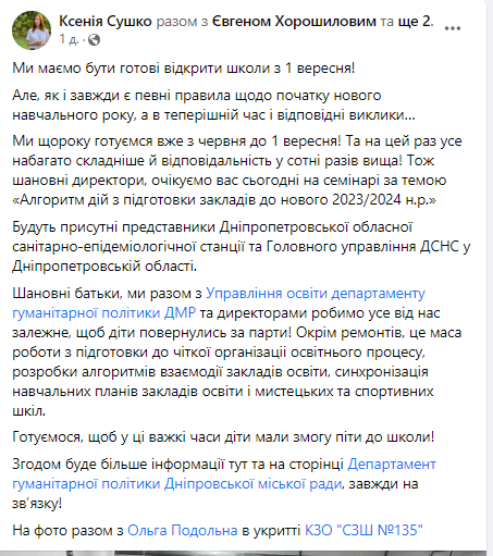 Об этом сообщила Ксения Сушко, заместитель городского головы Днепра, директор департамента гуманитарной политики горсовета.