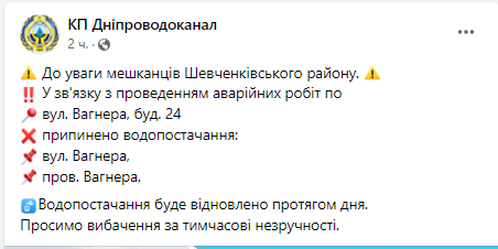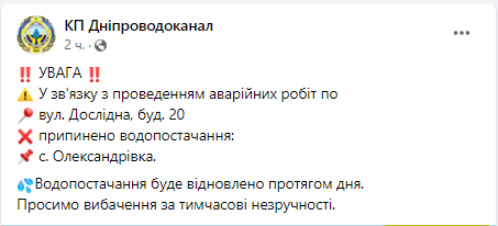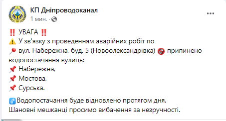 Напомним, ранее мы писали, что в Днепре несколько жилых массивов останутся без воды на два дня: адреса.