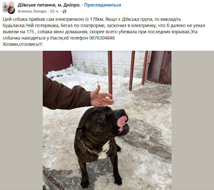 В Днепре собака потерялась после взрывов и сама отправилась в путешествие на электричке