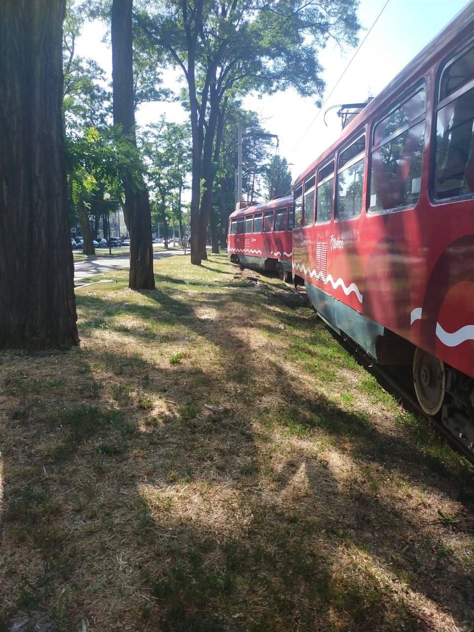 Сегодня, 20 июня, в Днепре по проспекту Дмитрия Яворницкого возле парка им. Глобы трамвай №1 сошел с рельсов.