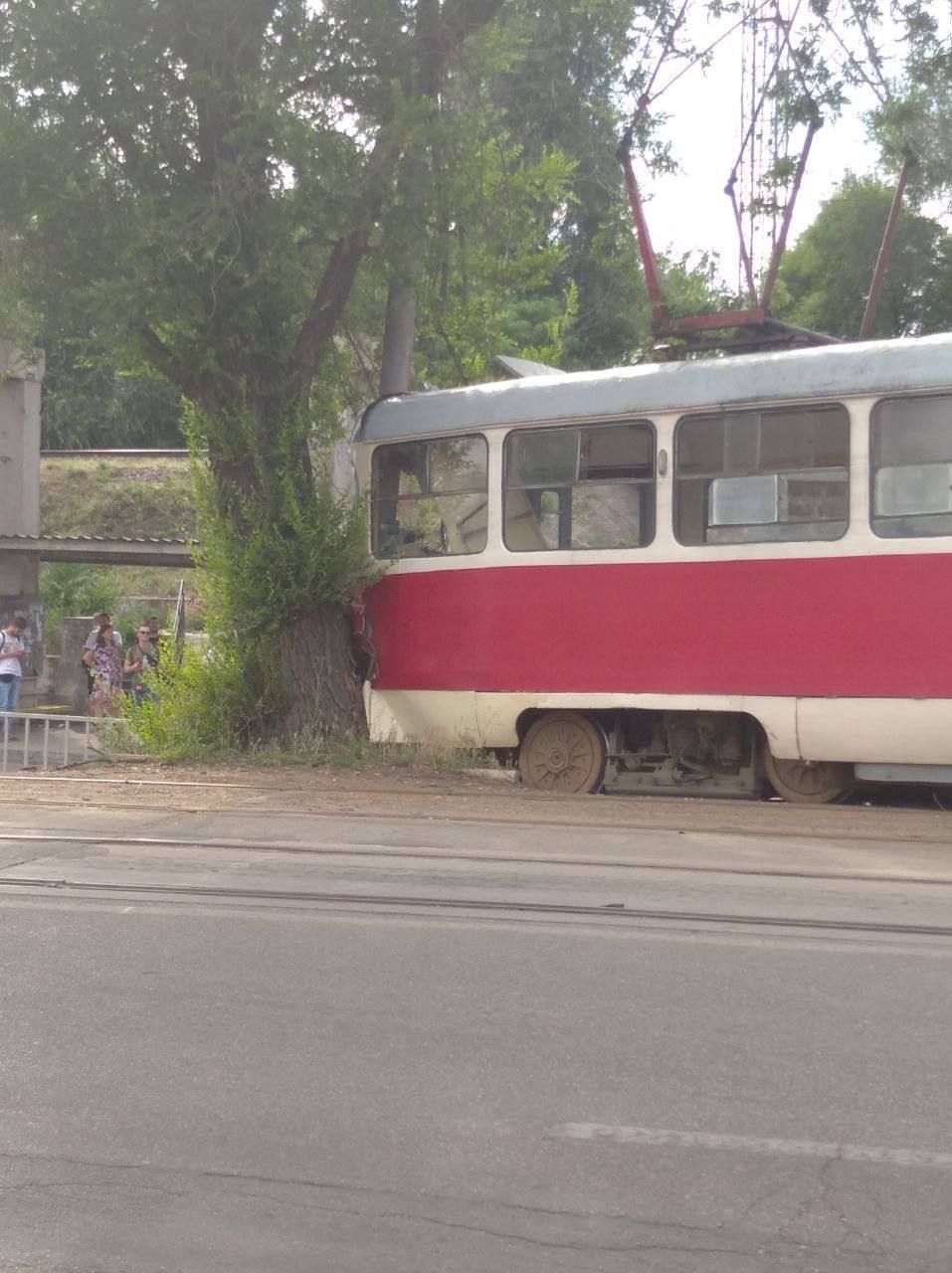 В Днепре трамвай №9 сошел с рельсов и врезался в дерево