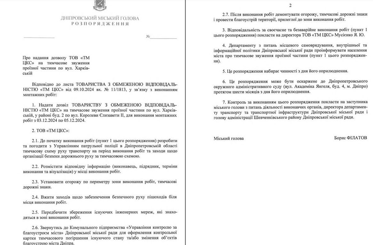 Об этом говорится в проекте распоряжения, обнародованном на сайте Днепровского горсовета 14 ноября.