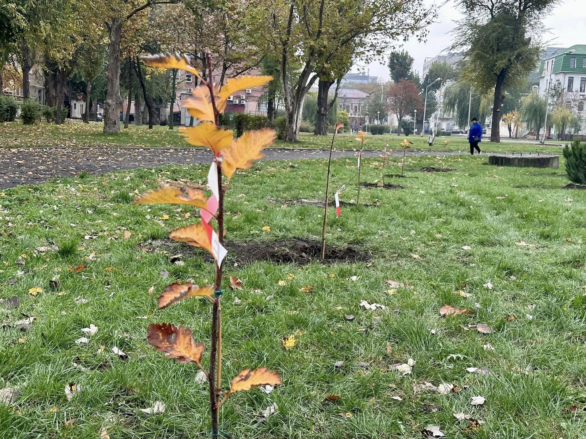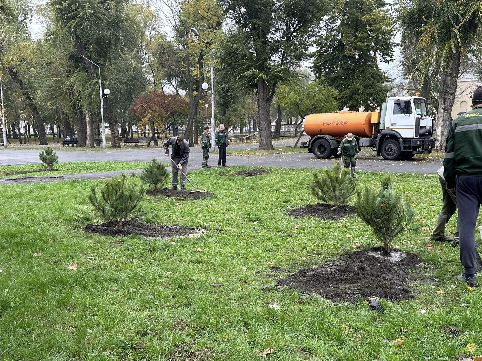 Деревья посадили недалеко от одного из входов в парк. Вместе с ОО "Миллион деревьев" и коммунальщиками удалось высадить десяток крымских сосен и еще десяток скандинавских рябин.