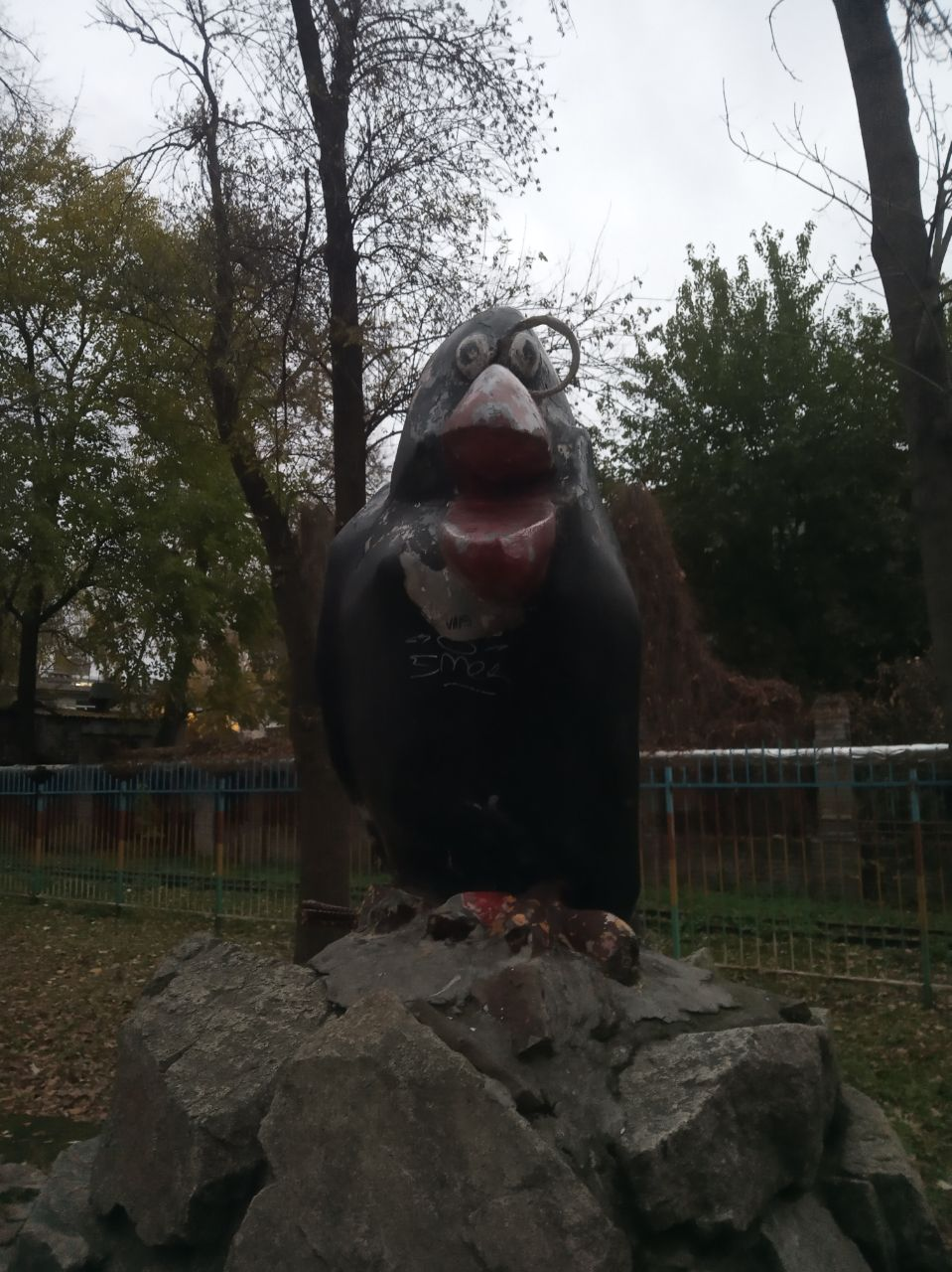 В Днепре в парке Глобы у вороны украли очки, а Айболиту сломали нос