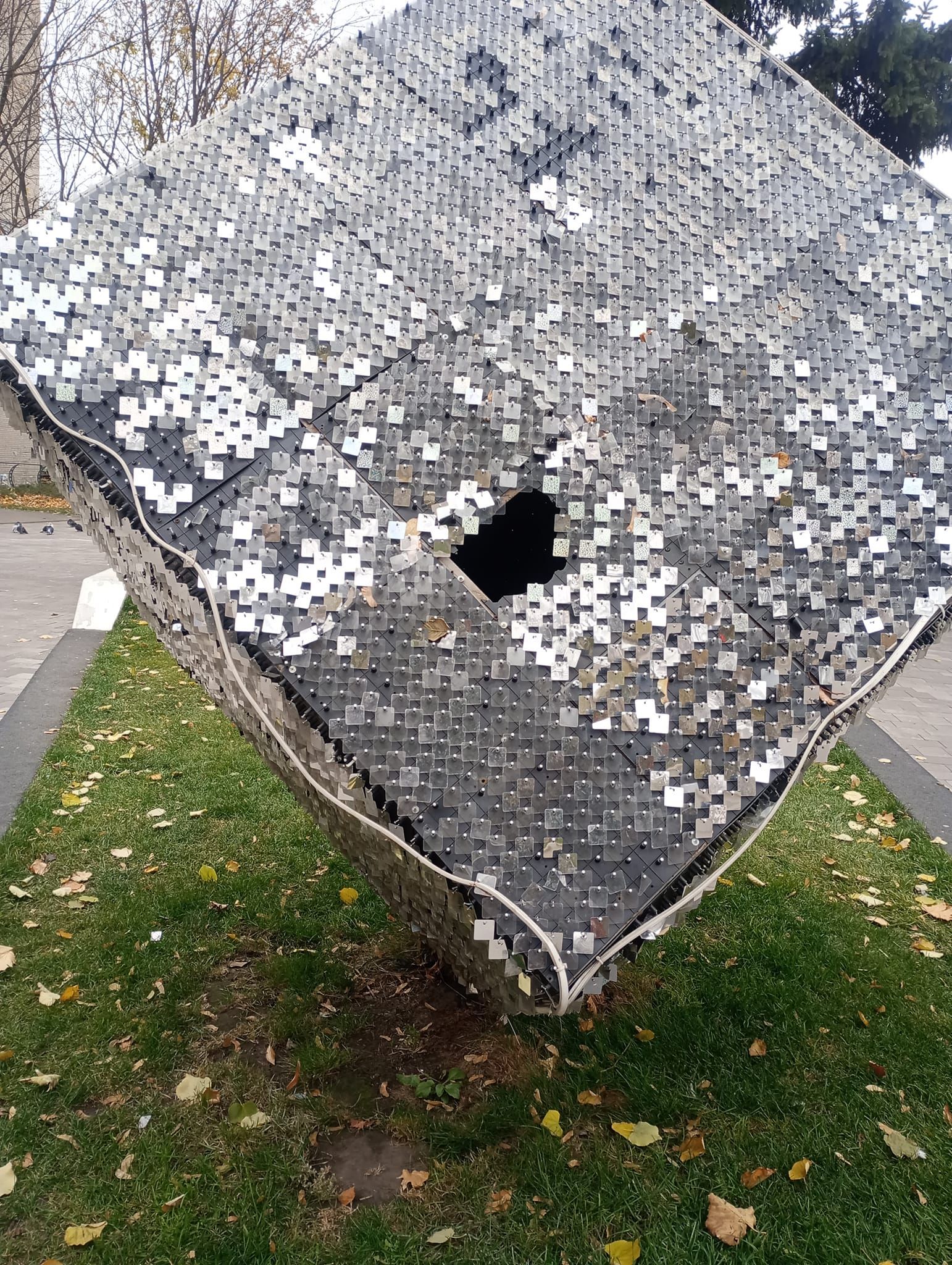 В парке Писаржевского вандалы изуродовали известную артинсталляцию. Жители Днепра обратили внимание на то, что один из серебристых кубов, продырявленный.