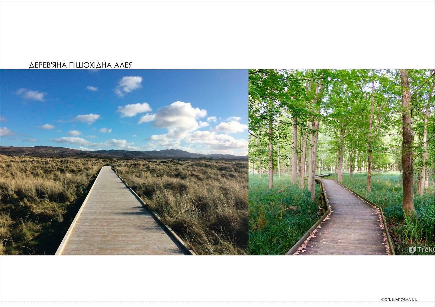 Также согласно этой концепции в зоне отдыха "лепестки" хотят сделать деревянные дорожки, которые якобы будут проходить через деревья. Ручейки должны быть похожими на горные реки, со множеством камней. Планируется большое количество зеленых насаждений и прогулочных зон, которые проходят непосредственно через деревья.