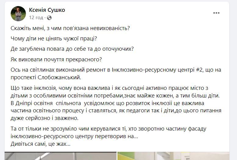 "Да вот только непонятно чем руководствовались те, кто обратную часть фасада инклюзивно-ресурсного центра превратил в Смотрите сами, это ужас...", - написала Ксения Сушко.