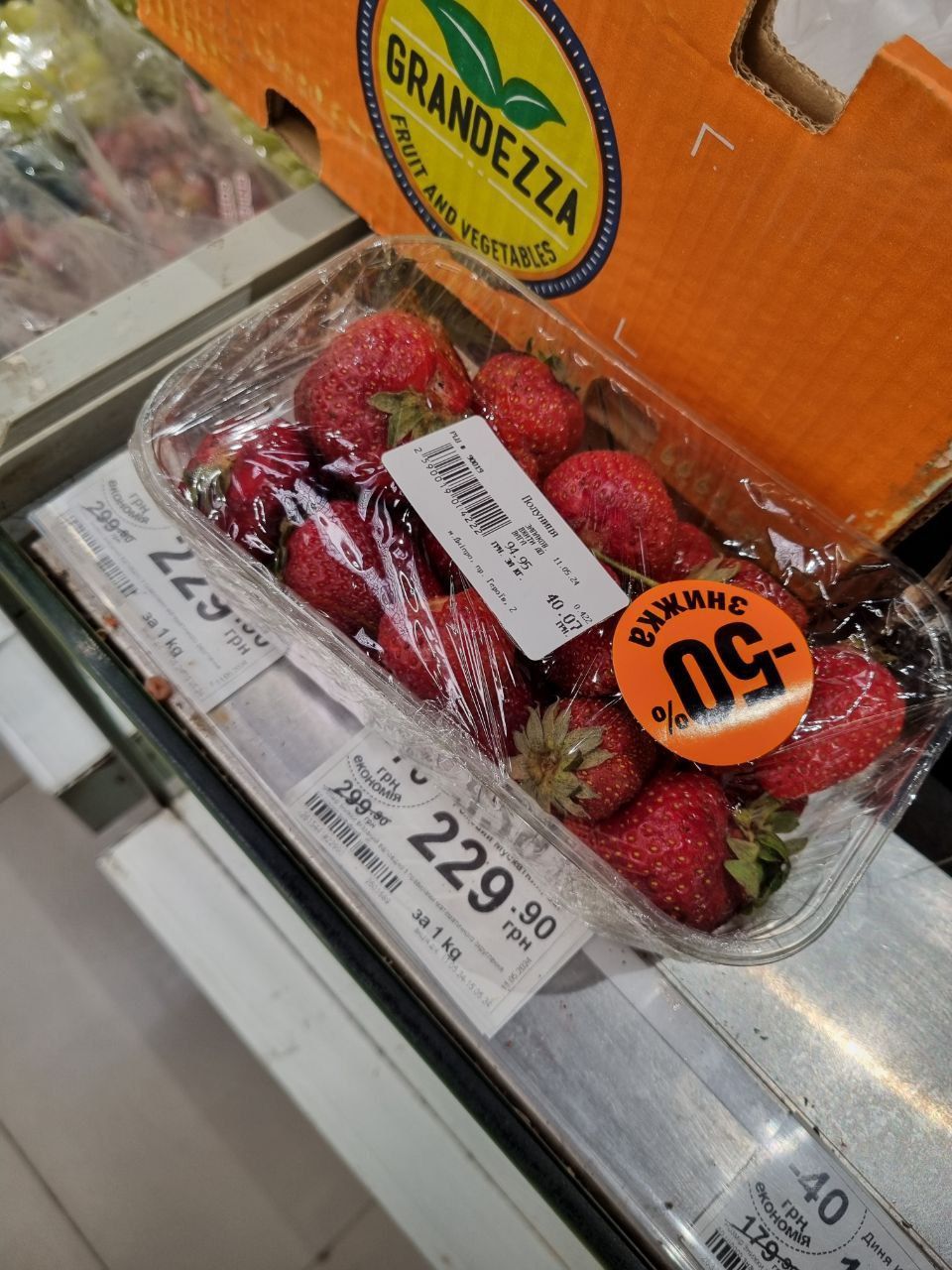 Есть и уценка за 90 гривен килограмм, но и качество такой клубники соответствующее.