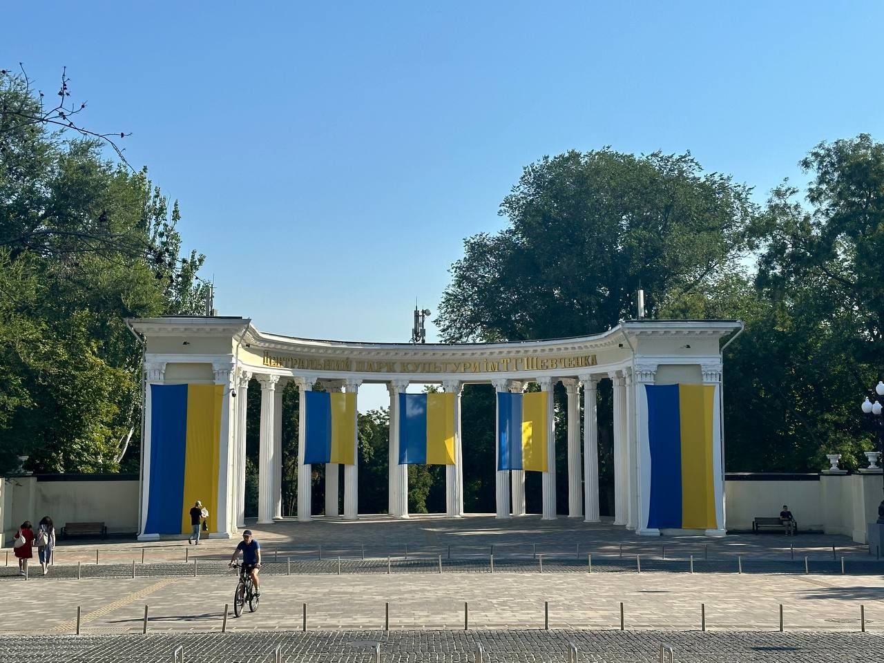 В честь праздника городские парки украсили флагами и национальной украинской символикой, сообщили в Департаменте парков и рекреаций. В частности, окрасились патриотическими цветами: