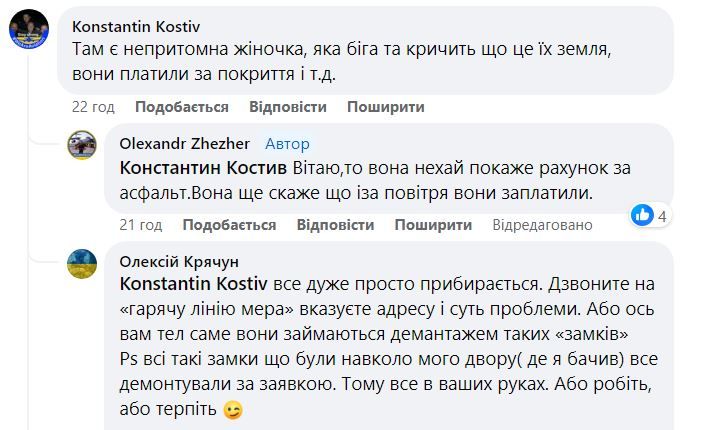 Это же касается и этих индивидуальных замков. И то и другое не законно, если вы не брали у города землю в аренду. А ее точно никто не брал, потому что городские власти не выделяют такие участки для физических лиц. Поэтому если жильцы этого и близлежащих домов будут действовать, а не просто жаловаться на то, что кто-то ведет себя не очень вежливо, то этот вопрос с легкостью решится, - отмечает днепрянин Алексей.