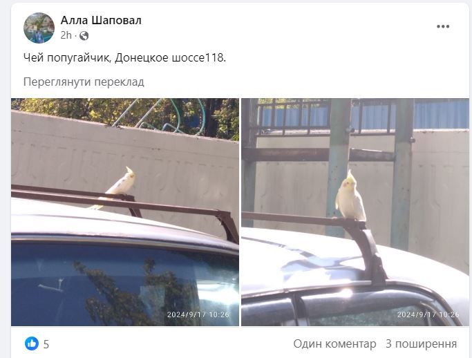 В Днепре на улице заметили потерянную экзотическую птицу.