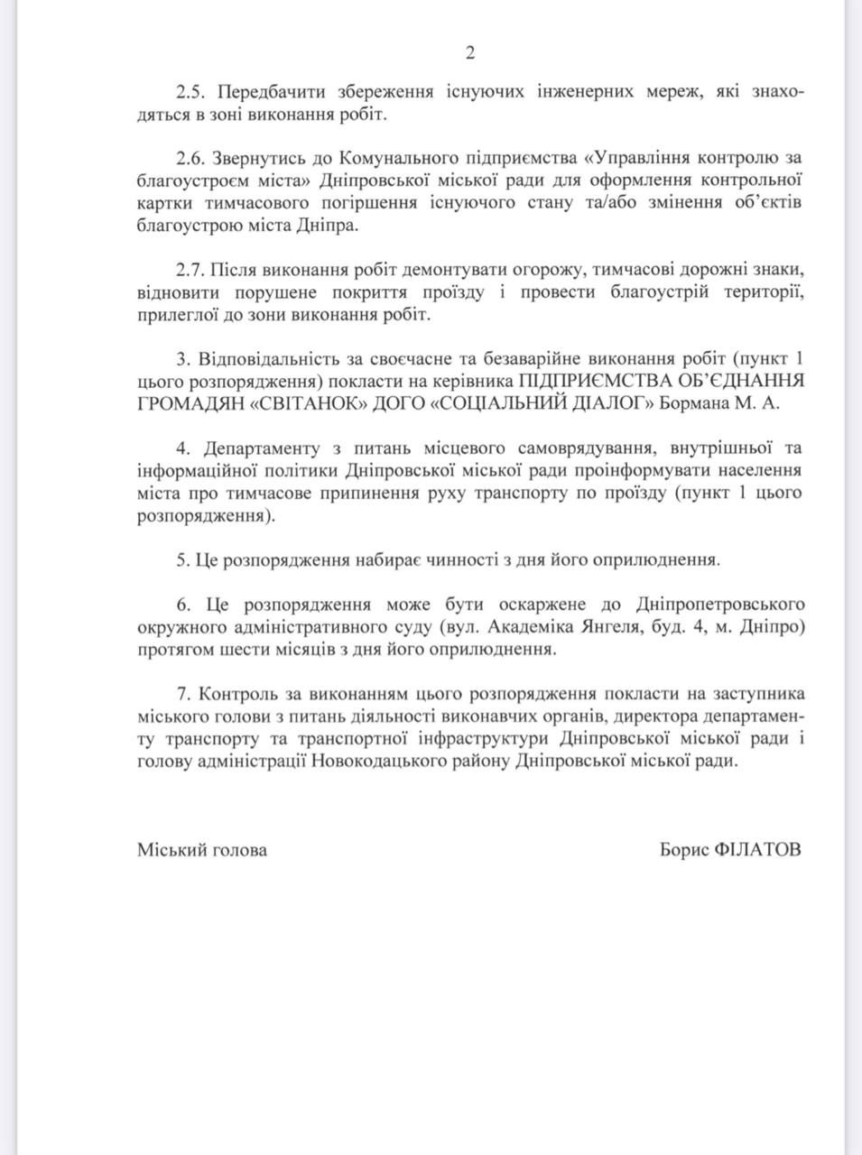 "Предоставить предприятию объединение граждан «Рассвет» Днепропетровской областной общественной организации людей с особыми потребностями «социальный диалог» на временное прекращение движения транспорта по проезду в районе ул. Набережной Заводской, 80-М для выполнения работ по текущему ремонту моста с 28.10.2024 по 01.11.2024", – говорится в сообщении.