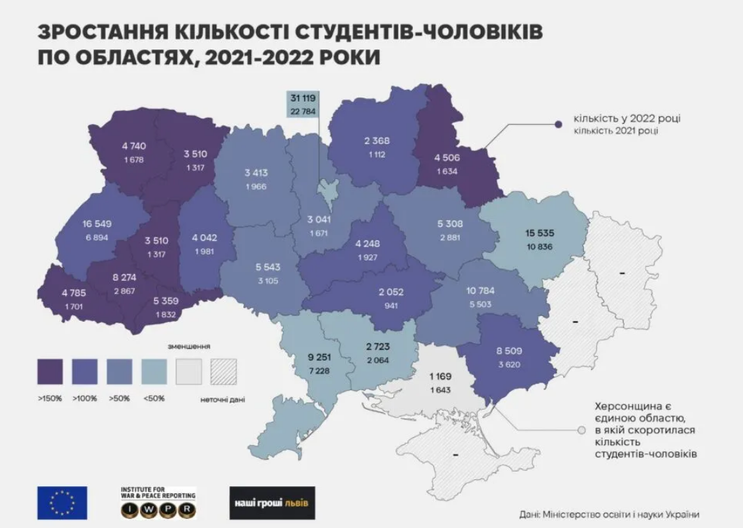 Учеба в университете всегда была способом "откосить" от армии, но после объявления мобилизации, этим методом воспользовалось более 85 тысяч мужчин призывного возраста. Ведь статус студента дает отсрочку в период военного положения.