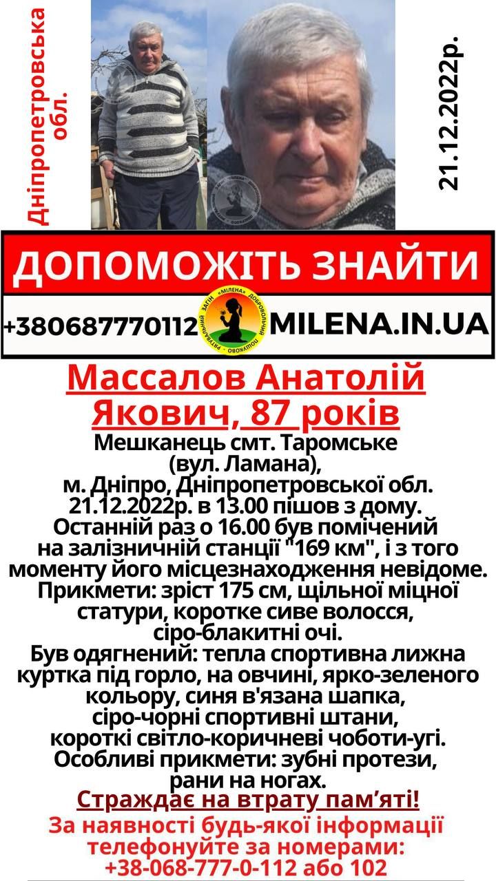 Если вы видели Анатолия Яковлевича, сообщите по номерам: (068) 777-0-112 или на линию “102”. Любая информация будет полезна.