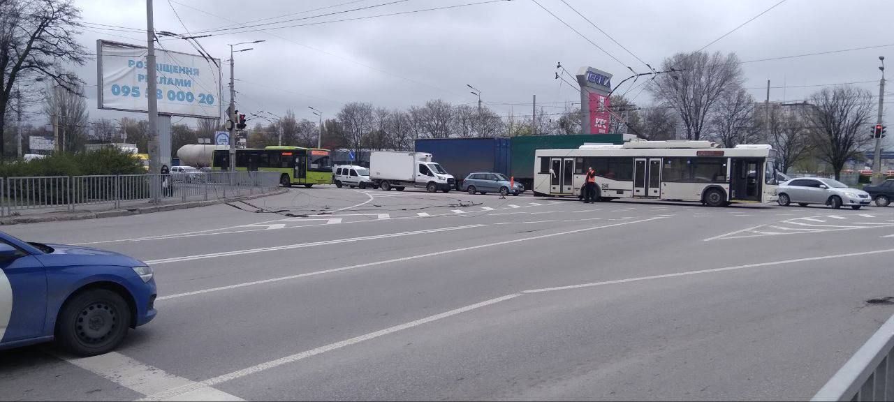 Сегодня, 21 апреля, в Днепре на перекрестке Запорожского шоссе и улицы Паникахи произошла авария. Там оборвалась контактная сеть общественного транспорта.