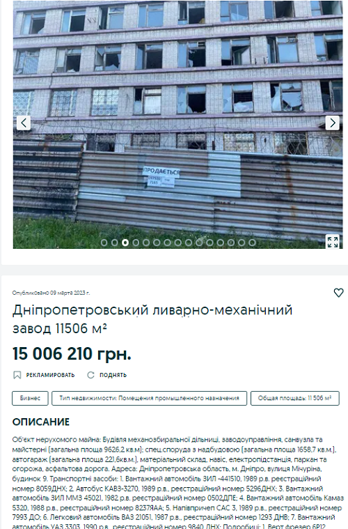 Государственный Днепропетровский литейно-механический завод был признан банкротом и начиная с февраля этого года на аукционе Prozorro его пытаются продать уже третий раз.