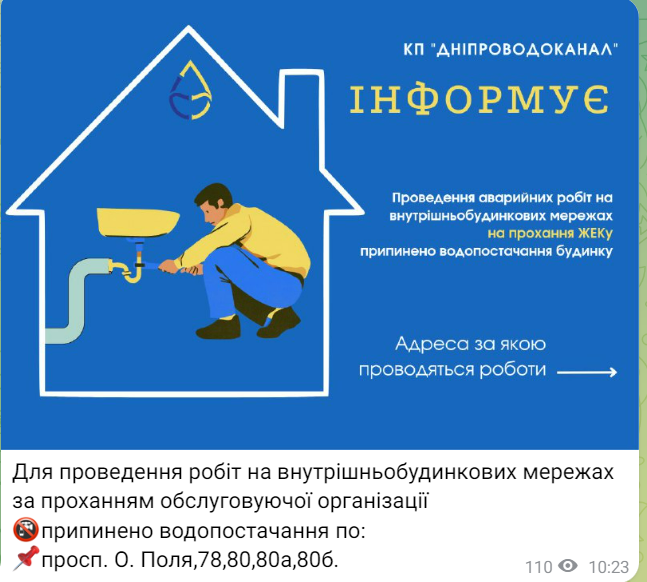 Кроме того, для проведения работ на внутридомовых сетях прекращено водоснабжение: