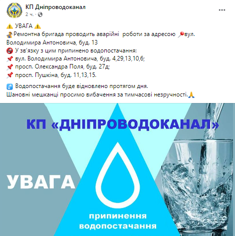 В Днепре жители некоторых проспектов остались без воды: подробности