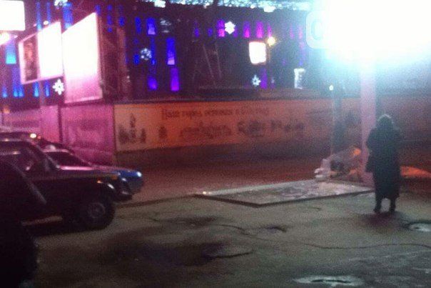 Вчера, 14 декабря, вечером рекламный щит на площади Героев Майдан упал прямо на тротуар.