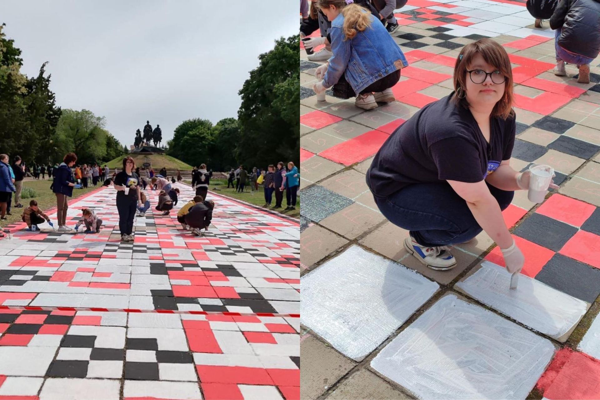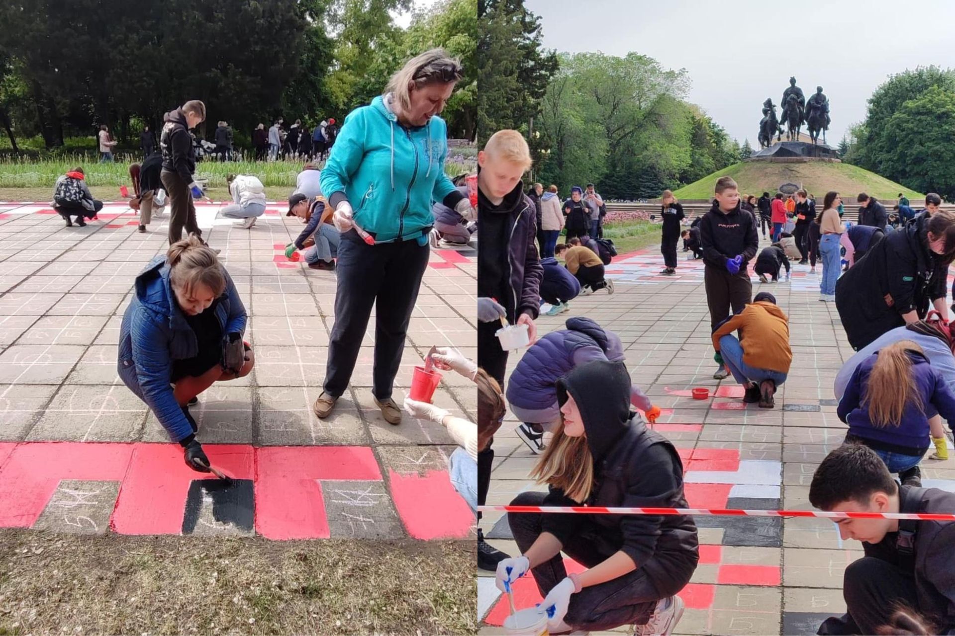 Отныне в парке Славы на центральной аллее от улицы Героев Украины до памятника славным казакам есть огромная "вышиванка", которую раскрасили участники акции.