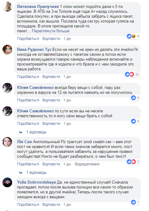 Жители Днепра бурно отреагировали на сообщение. Одна женщина подтвердила, что произошедшее - не единственный случай в супермаркете. Сначала там вещи пропадают, а после вызова полиции все каким-то образом появляется, но в другой ячейке.