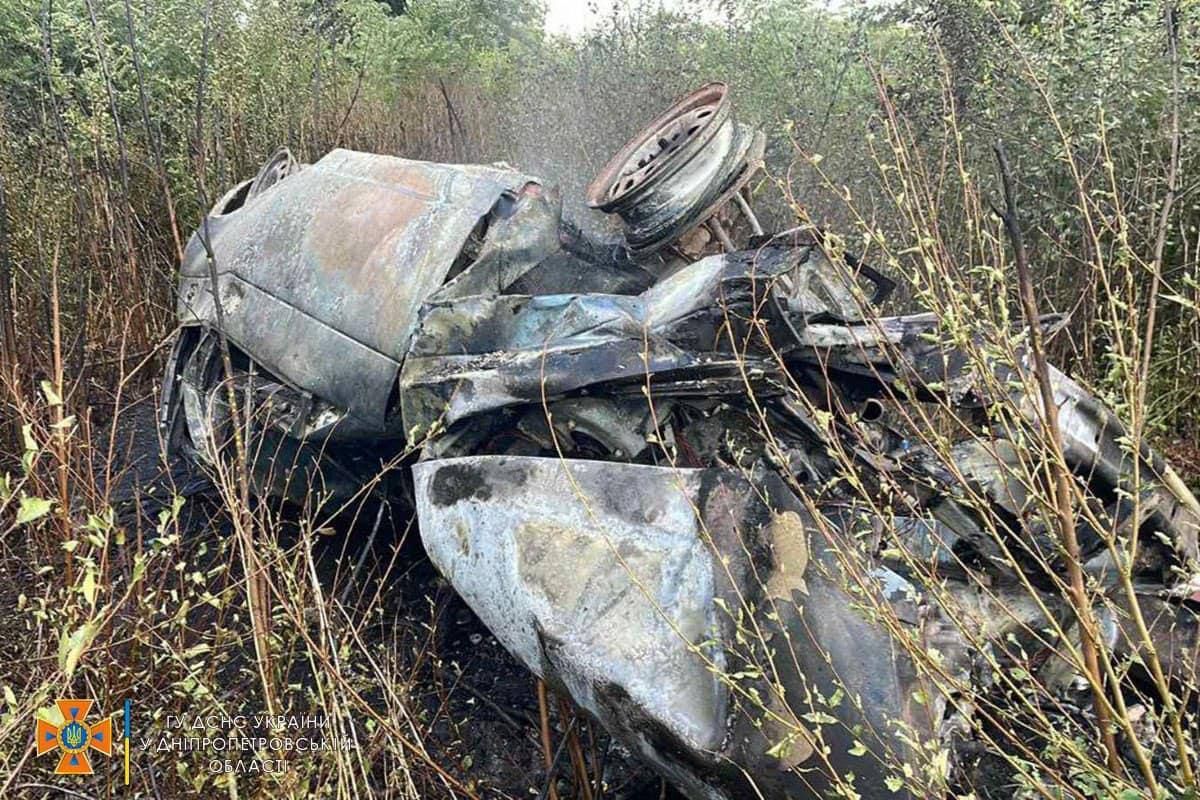 В горящем автомобиле были обнаружены тела трех человек. Их личности еще не установлены.