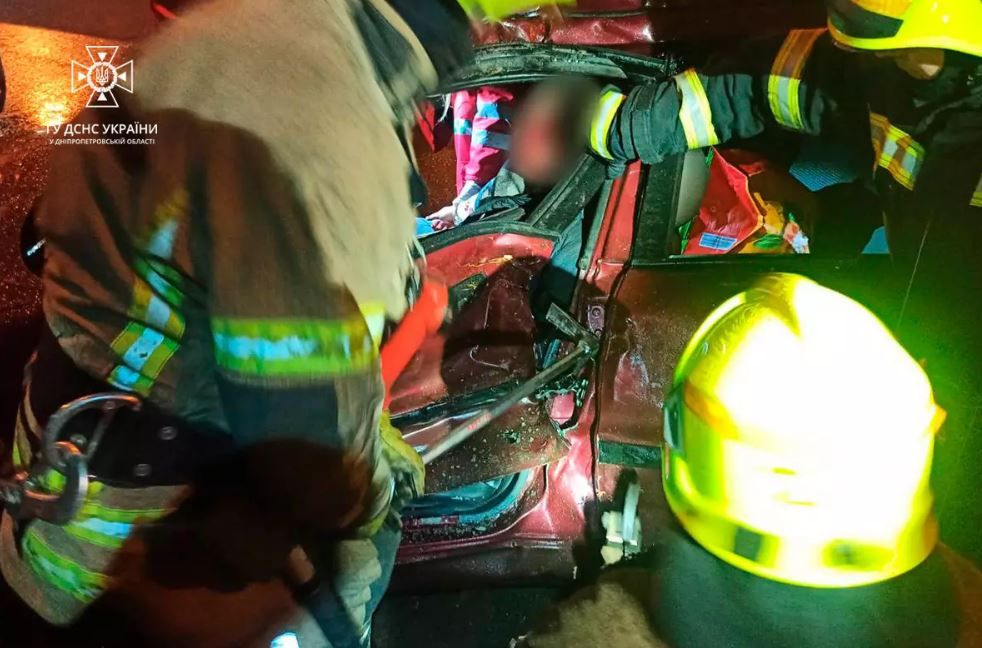На улице Сичеславская Покровского района города Кривой Рог, в результате столкновения двух автомобилей человека зажало внутри деформированного кузова автомобиля.