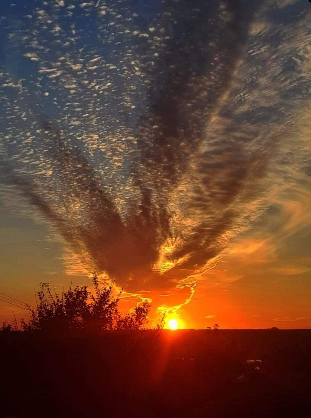 А вот таким очаровательным был закат. Облака напоминают гигантского голубя.