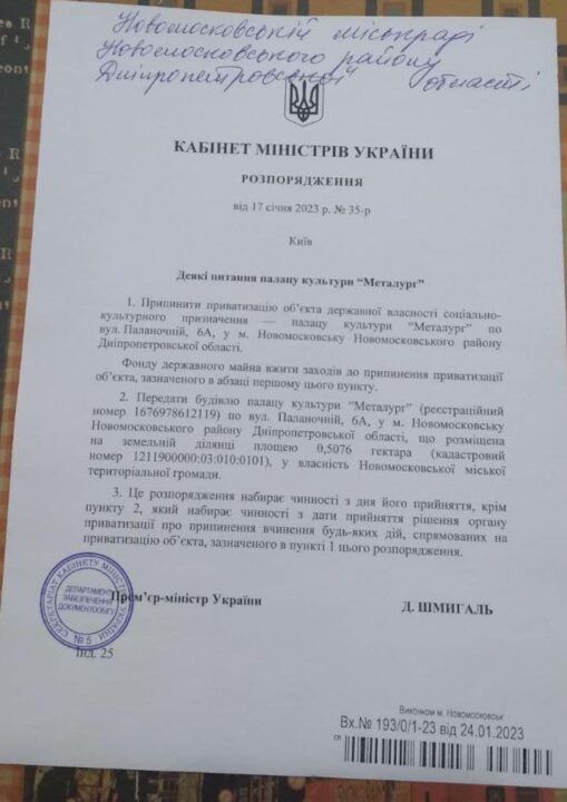 В Новомосковске на Днепропетровщине самый большой в городе Дворец культуры "Металлургов" окончательно вернули в собственность территориальной общины. Об этом говорится в сообщении городского головы Новомосковска Сергея Резника.