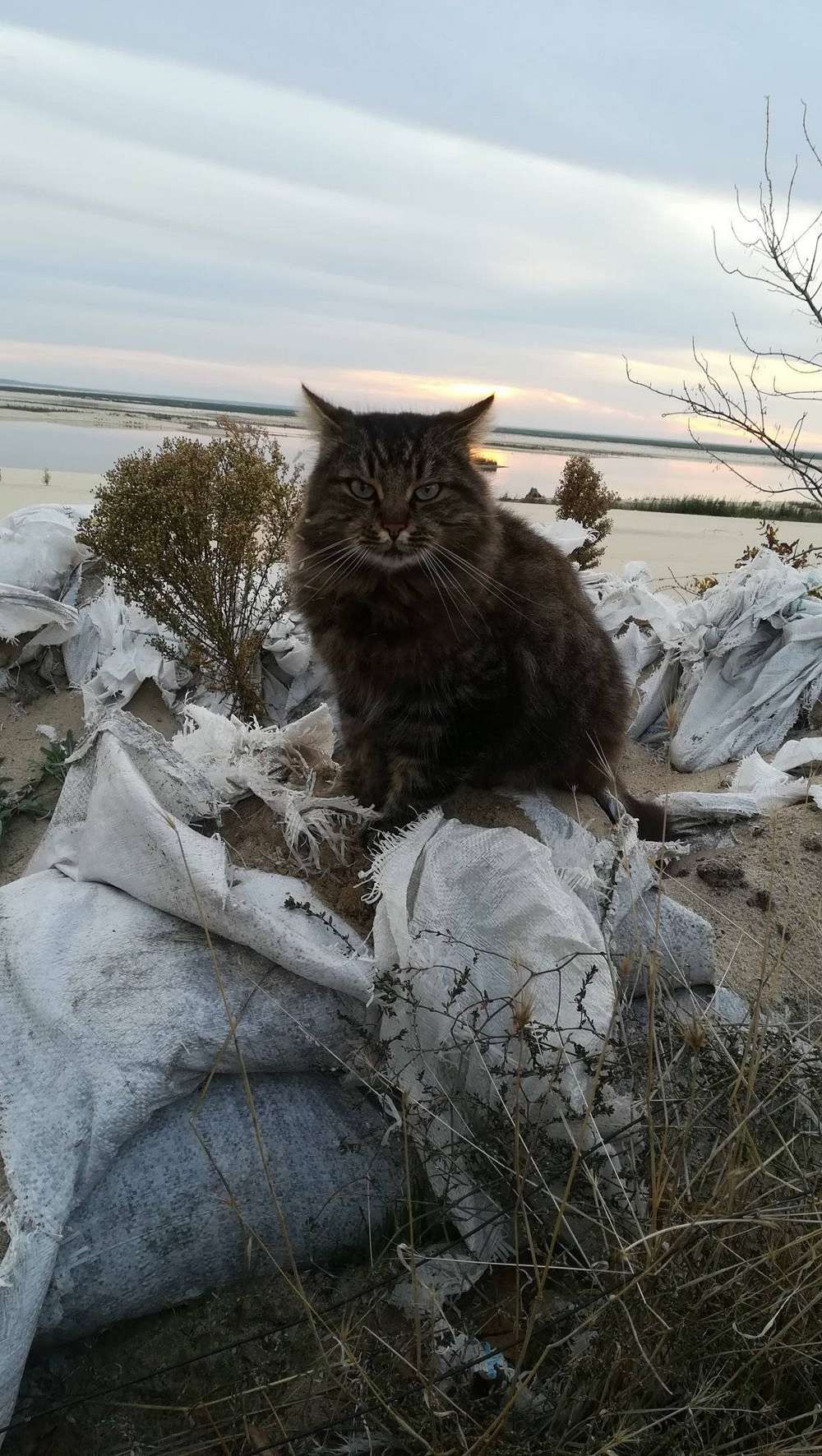 Волонтер у Никополя подкармливает кошек, живущих на прибрежных территориях. Это самая опасная локация в месте, ведь при обстреле чаще всего прилетает именно сюда. Несмотря на громкие звуки, здесь живут бродячие коты, которых Анастасия взяла под свое крыло. Одного котика уже убили, поэтому для другого ищут хозяев.
