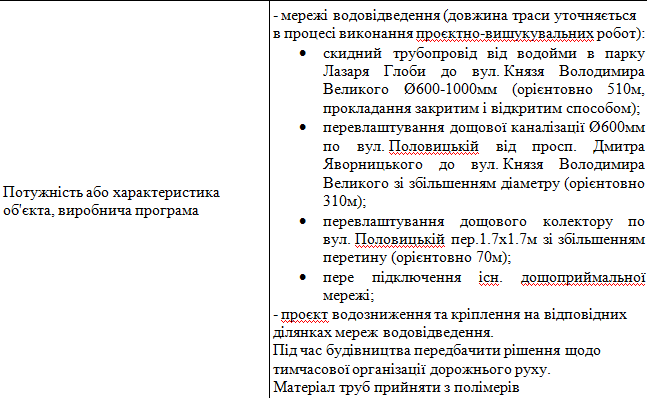 На проект предусмотрено 1 496 764,00 грн. Проект нового трубопровода по ул. Половецкой подрядчик должен выполнить не дороже 1 410 700,00 гривен.