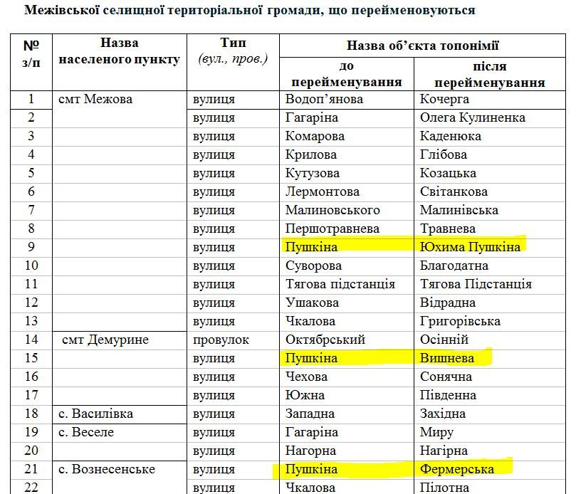 В тергромаде Днепропетровщины Пушкина переименовали в Пушкина.