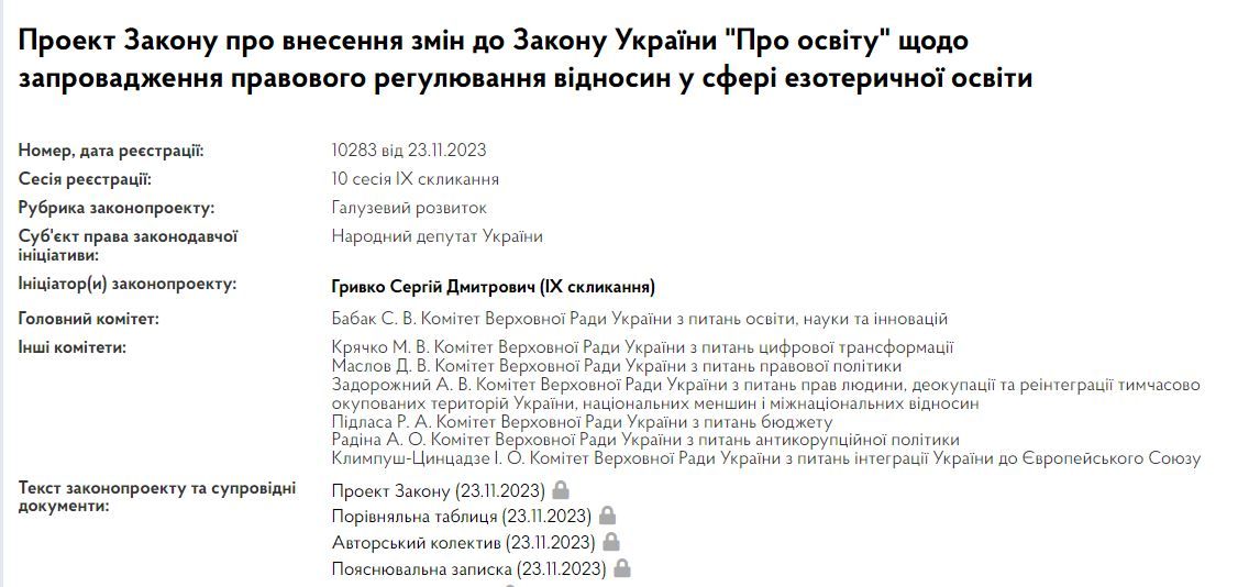 Как отмечает нардеп в пояснительной записке, в обществе сформировалась необходимость признания эзотерических услуг и образования неотделимой частью современной жизни. Гривко отмечает, что из-за роста популярности этой отрасли не научного познания, эзотерика стала отдельной сферой занятости, а также направлением образования.